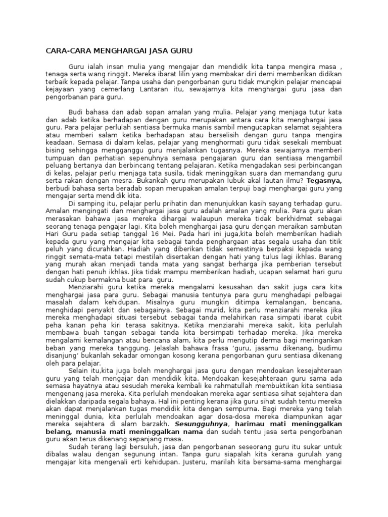 Karangan Cara Cara Menghargai Jasa Guru / Cara menghargai jasa guru pdf soalan 1 dimensi diri pengorbanan guru amat berharga dalam kehidupan seseorang pelajar jelaskan cara cara anda course hero.