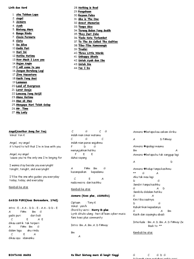 Walau hati yang membisu sinar mata berpadu saat itu ku merasa dua hati bertemu. C g terang bulan, terang bulan di kali c buaya timbul, katanya lah mati gm f jangan percaya orang lelaki c g f c/e dm7 c berani sumpah, dia takut mati. Lagu terang bulan mp3 ✖. Buaya timbul, katanya lah mati. Titik sandhora lirik lagu terang bulan di gunung. Makna lirik lagu lir ilir antara lain, yaitu sebagai berikut. Endeken kami lagu siterang bulan turang la megogo. ★ this makes the music download process as comfortable as possible. #1 terang bulan di pantai bali. Lirik pada lagu keroncong kemayoran ini memiliki banyak versi, namun tetap dengan susunan lirik dan nada yang sama. Lagu siterang bulan turang morah ate lagu siterang bulan bulanna meganjang enggo kita erkuan turang morah ate nggo kita erkuan ulanai kita sirang ula kita sirang. La la la la la la la laaa terang bulan terang di kali jiwa manis indung disayang la la la la la la la la oo buaya timbul buaya timbul disangka mati. Walau hati yang membisu sinar mata berpadu saat itu ku merasa dua hati bertemu.
